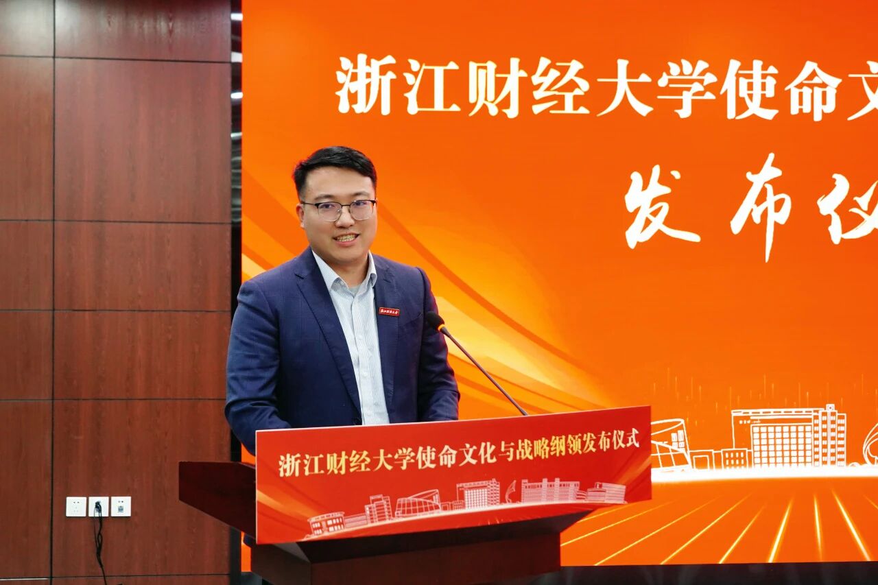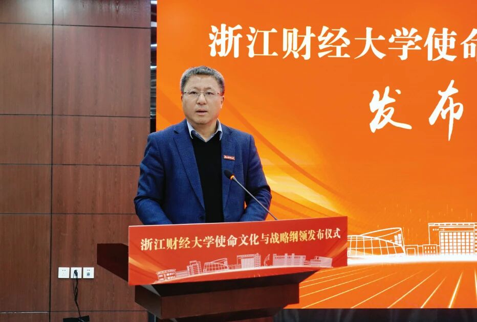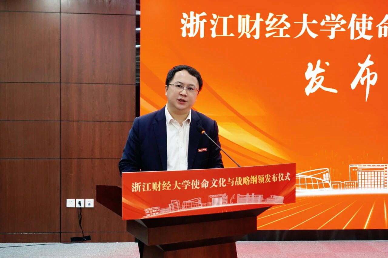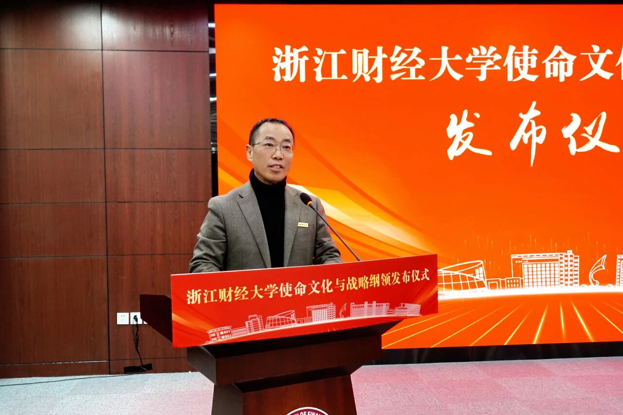 陈衍泰在主持时强调,当前学校正处于“新财经战略”深入推进的关键时期,《纲领》的发布正当其时、意义深远,既是对学校五十余载办学脉络的系统梳理,更是面向数字经济与人工智能时代的一次主动应答与文化筑基。他从四个方面全面解读了《纲领》的核心要义:筑牢精神根基,凝练文化内核:重申“八字”校训,凝练“十六字”浙财精神,构成了层层递进的精神谱系;明确师生分群体价值观,构建“改革、创新、团结、奋斗”的的工作信念,形成全员共同的价值遵循。明确使命愿景,锚定发展方向:确立“创新人本教育,培养完全人物;建构知识体系,贡献财经智慧;深嵌浙江大地,推动社会文明”的办学使命,锚定“建设具有鲜明新财经特色的一流研究教学型大学”的发展目标;为学校长远发展绘制清晰蓝图。擘画发展路径,走出财经新路:走“使命引领、跨界融合、为人而育、开放生态”的财经新路,推进“财经×数智”“财经×科技”“财经+产业”深度融合;打造“一生一方案”的培养体系,培育具有“K+MAQ”特质的中流砥柱型人才;开放生态秉持“跳出财经发展财经”理念,构建开放包容的办学生态。强化战略支撑,完善实施体系:构建“党建引融、新学科、新培养、新生态、新治理体系”五大战略支撑体系,努力在培养担当民族复兴大任的时代新人中展现浙财作为,在构建自主知识体系中贡献浙财智慧,在服务国家战略和区域发展中彰显浙财担当,为高质量发展保驾护航。